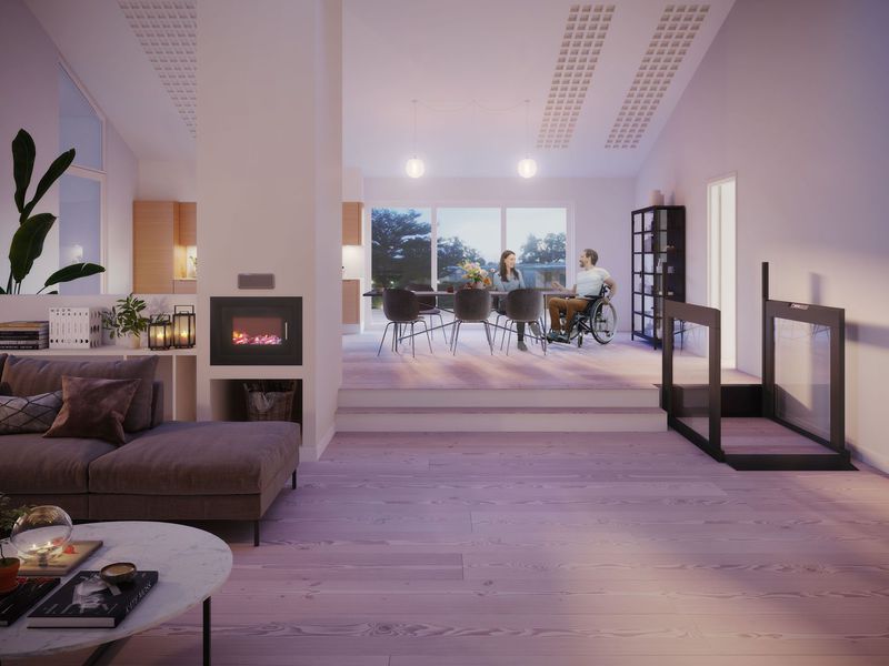 Bei rechtzeitiger Planung im Zuge einer Renovierung oder eines Umbaus kann der Plattformlift völlig Eben mir dem vorhandenen Bodenniveau eingerbaut werden.