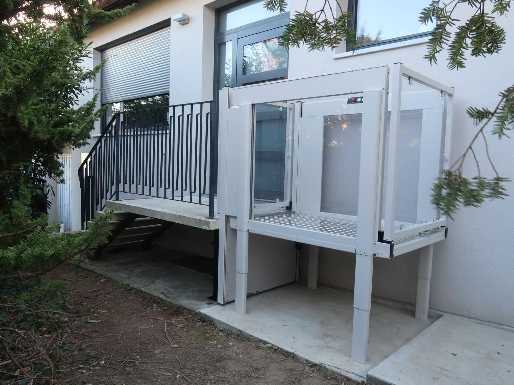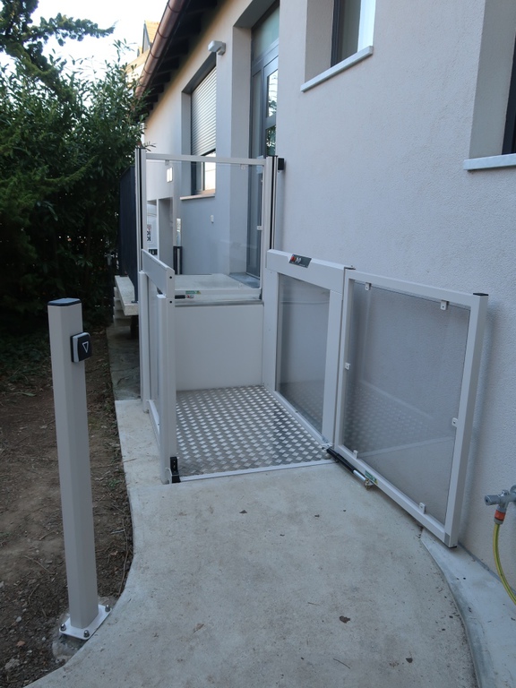 Meist erfolgt die Errichtung neben einer bestehenden Treppe für die Fußgänger. Im Unterschied zum HDN Bodenlift verfügt der Easylift™ 400 über eine Umbauung und Sicherheitstüren oben und auf der Plattform. Der Easylift ist für höhere Niveauunterschiede von 50cm bis zu 1,25m konzipiert.