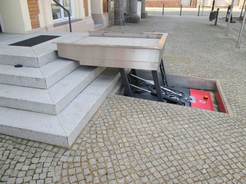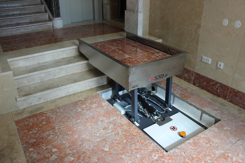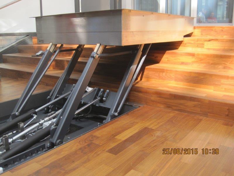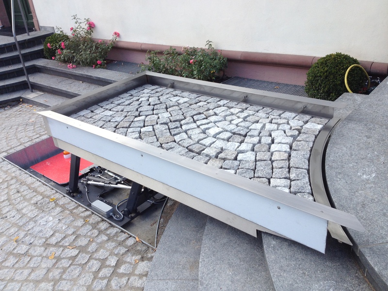 Der Hydrolift ist "der große Bruder" des einfachen Bodenlifts. Die Plattform des Hydrolift bewegt sich nicht nur vertikal, sondern auch horizontal, wodurch die Überwindung von mehreren