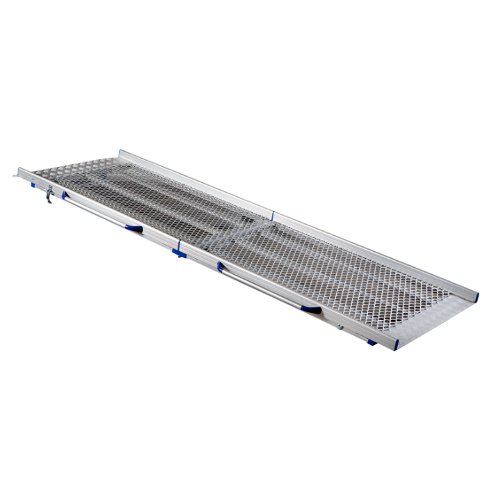 Die Rampen sind mittig, in Querrichtung faltbar um die Länge beim Transport zu verringern (1m auch in einem Stück lieferbar)