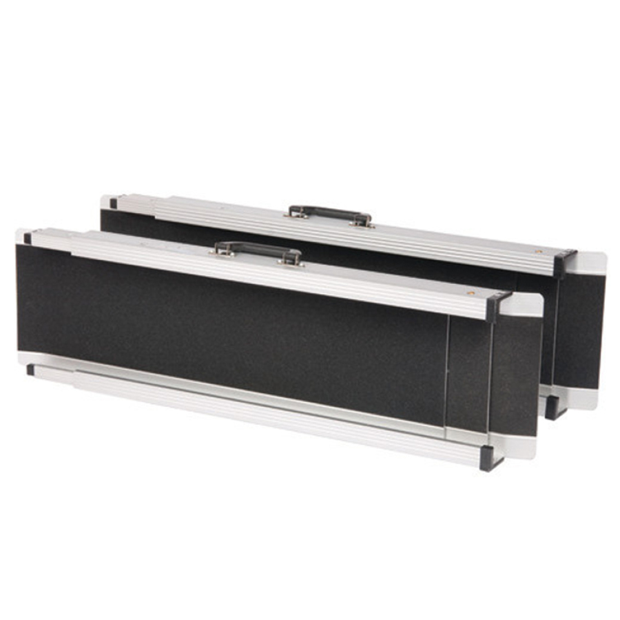 Durch die zwei separaten Rampen können unterschiedliche Rollstuhlbreiten bedient werden - gleichzeitig teilt sich das Gewicht und die Manövrierbarkeit wird deutlich erleichtert.
